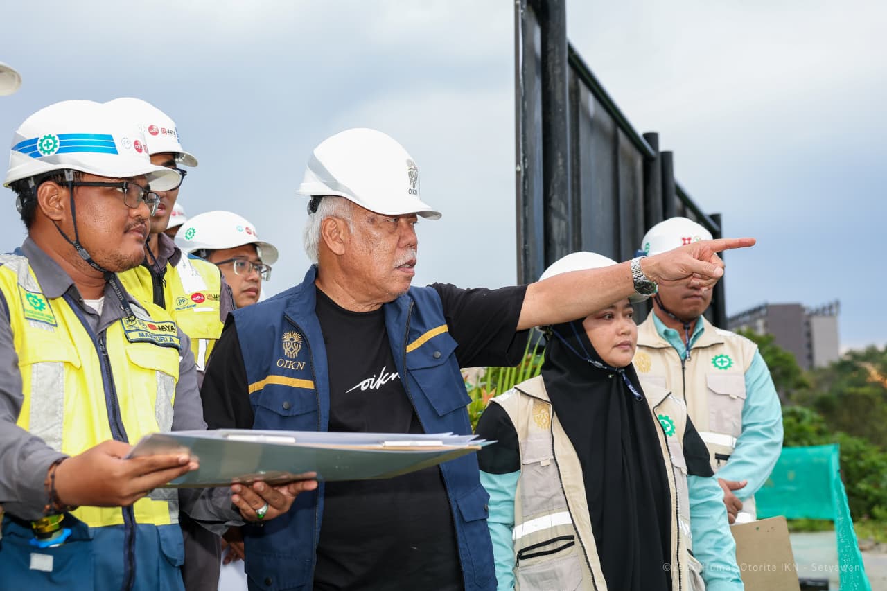 Kepala Otorita IKN Basuki Hadimuljono tinjau pembangunan Polresta IKN di KIPP. Target rampung 2027 dengan sistem satu komando OIKN.