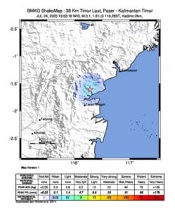 PASER – Gempa bumi tektonik bermagnitudo 3,1 mengguncang wilayah Long Kali, Kabupaten Paser, Kalimantan Timur, pada Kamis malam, 24 Juli 2025, pukul 19.53 WITA.