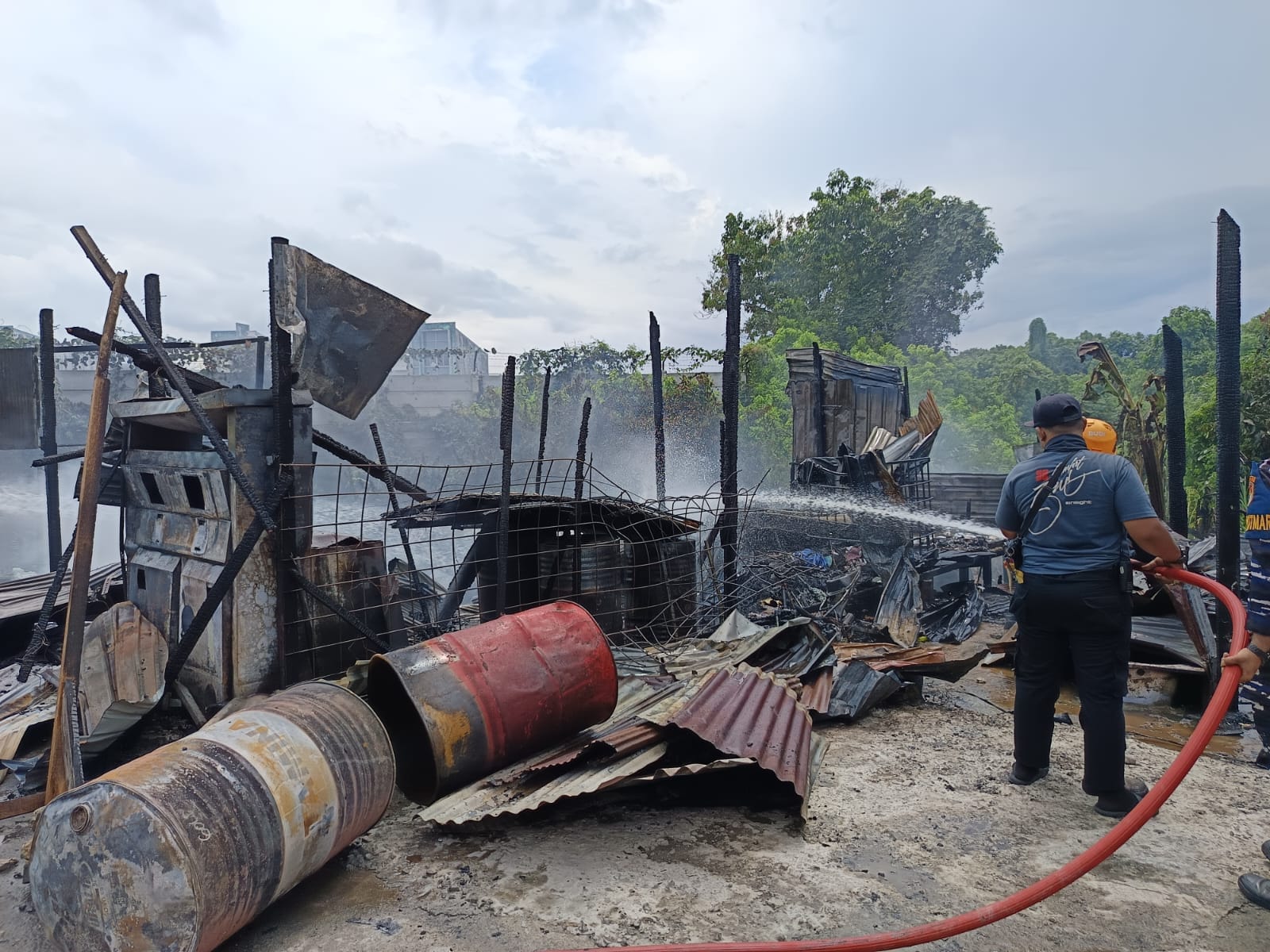 “Tadi saya bersama empat orang sudah bawa APAR, kami coba padamkan tapi memang susah karena api sudah sangat besar dan angin kencang,” kata dia.