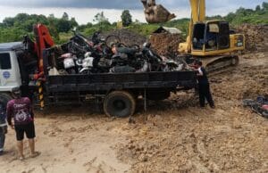 Satlantas Polresta Balikpapan bersama Kejari menimbun 37 kendaraan sisa kecelakaan yang tidak diklaim pemiliknya.