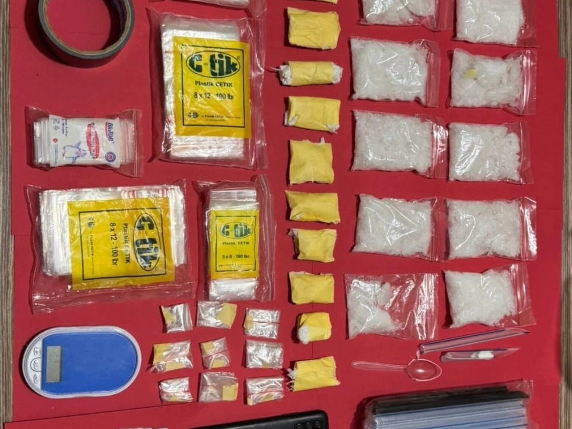 Dalam penggeledahan yang disaksikan ketua RT dan warga, polisi menemukan 12 bungkus besar sabu dengan total berat bruto 553 gram. Selain itu, turut diamankan sejumlah barang pendukung berupa timbangan digital, plastik pembungkus, alat isap, dua unit telepon genggam, dan satu unit sepeda motor.