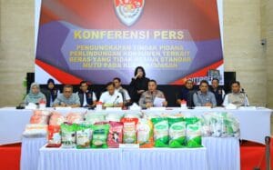 “Hasil uji laboratorium membuktikan bahwa beras yang dijual sebagai premium dan medium, mayoritas tidak sesuai standar mutu, dijual di atas HET, dan memiliki berat riil di bawah kemasan,” jelas Brigjen Helfi.