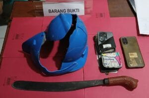 Penangkapan berlangsung dramatis. Pelaku sempat menolak menyerah meski telah diperingatkan. Setelah tembakan peringatan dilepaskan, ia akhirnya menyerah tanpa perlawanan. Barang bukti yang diamankan polisi meliputi sebilah parang, sebuah helm biru, dan satu unit handphone rusak.