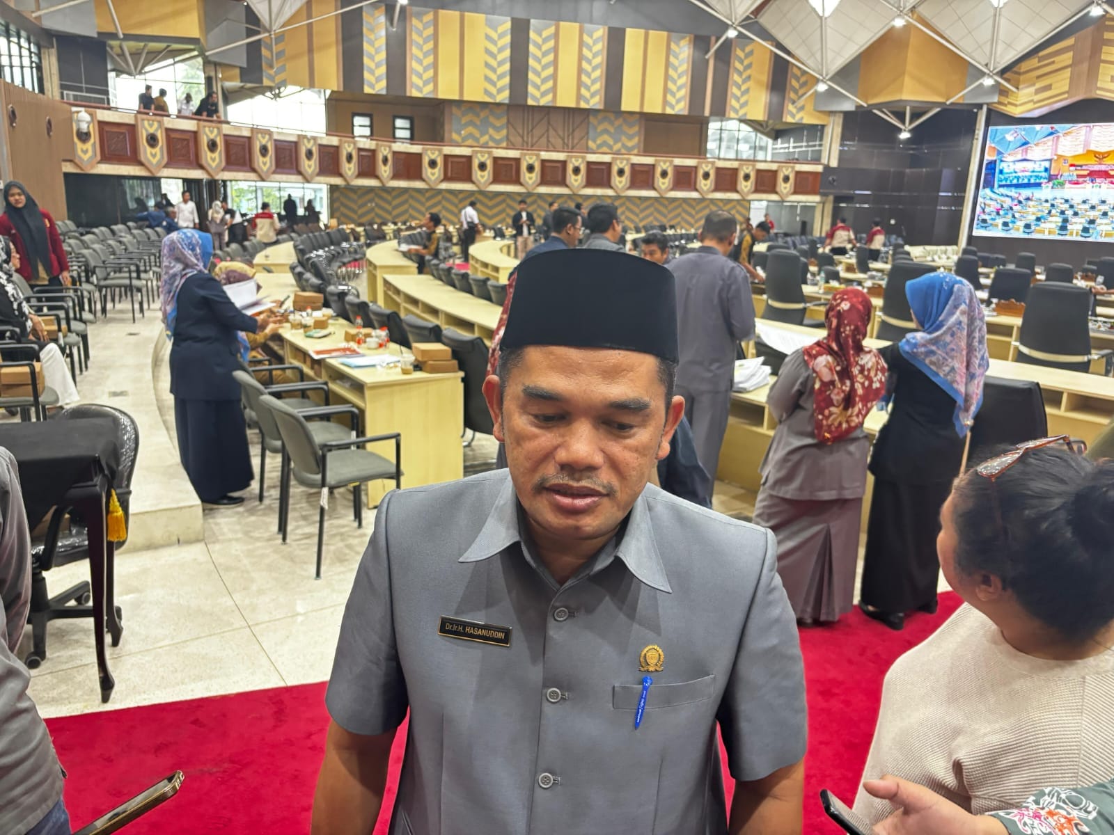 Ketua DPRD Kaltim, Hasanuddin Mas'ud, jelaskan mekanisme formal penggantian gubernur yang berhalangan hadir dalam paripurna, namun soroti pentingnya kehadiran simbolik.